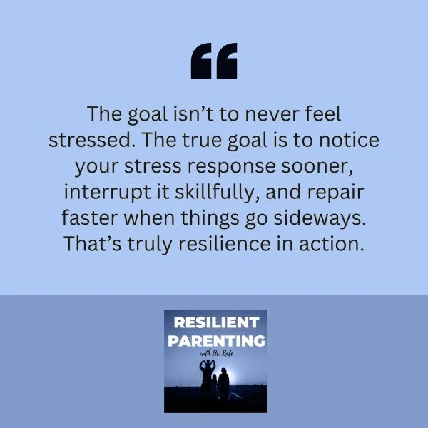 The goal isn't to never feel stressed. Let's face it, stress is real. Challenges are going to come up day in and day out. It's how we navigate through and beyond those challenges. How we show up for those challenges so that we can navigate through and beyond them is what makes all the difference. The true goal is to notice your stress response sooner and interrupt it more skillfully and then repair faster when things go sideways. That's truly resilience in action.